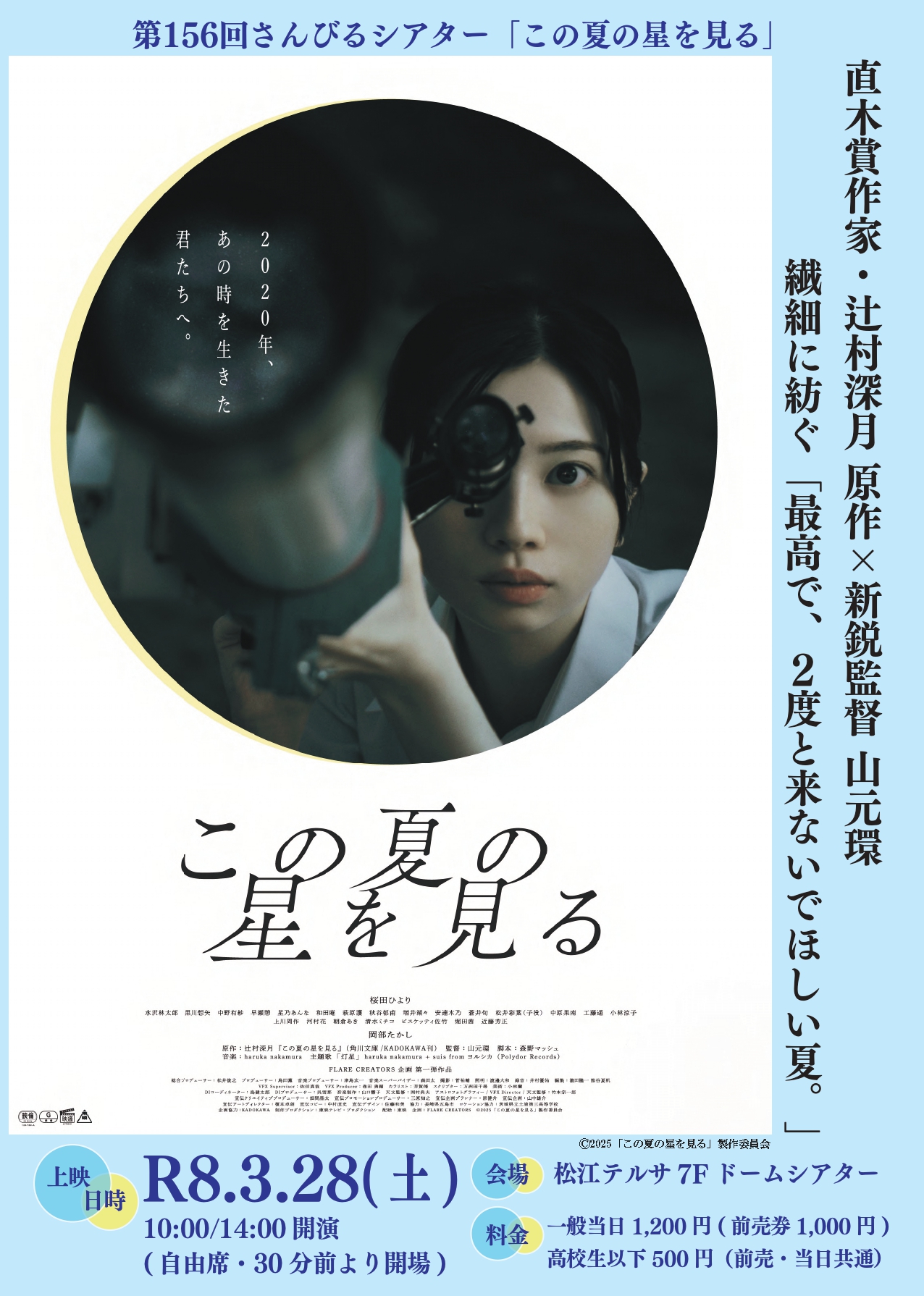 2026年3月28日(土)の第156回さんびるシアターは、「この夏の星を見る」を上映します!!