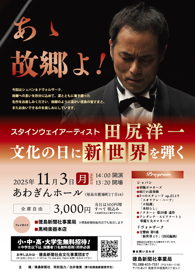 スタインウェイアーティスト田尻洋一 文化の日に「新世界」を弾く