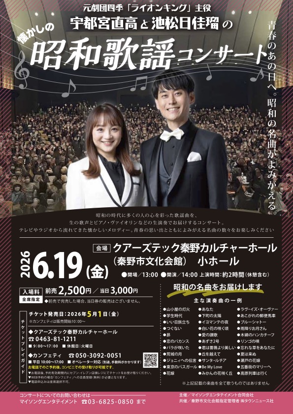 「昭和歌謡コンサート」は、長く愛される唱歌や歌謡曲など、誰もが一度は口ずさんだことのある楽曲をプロのボーカリストと共に楽しむイベントです。 友と駆けた幼少時代、大切な人と過ごした青春。歌と共に、あの頃にタイムスリップしませんか?