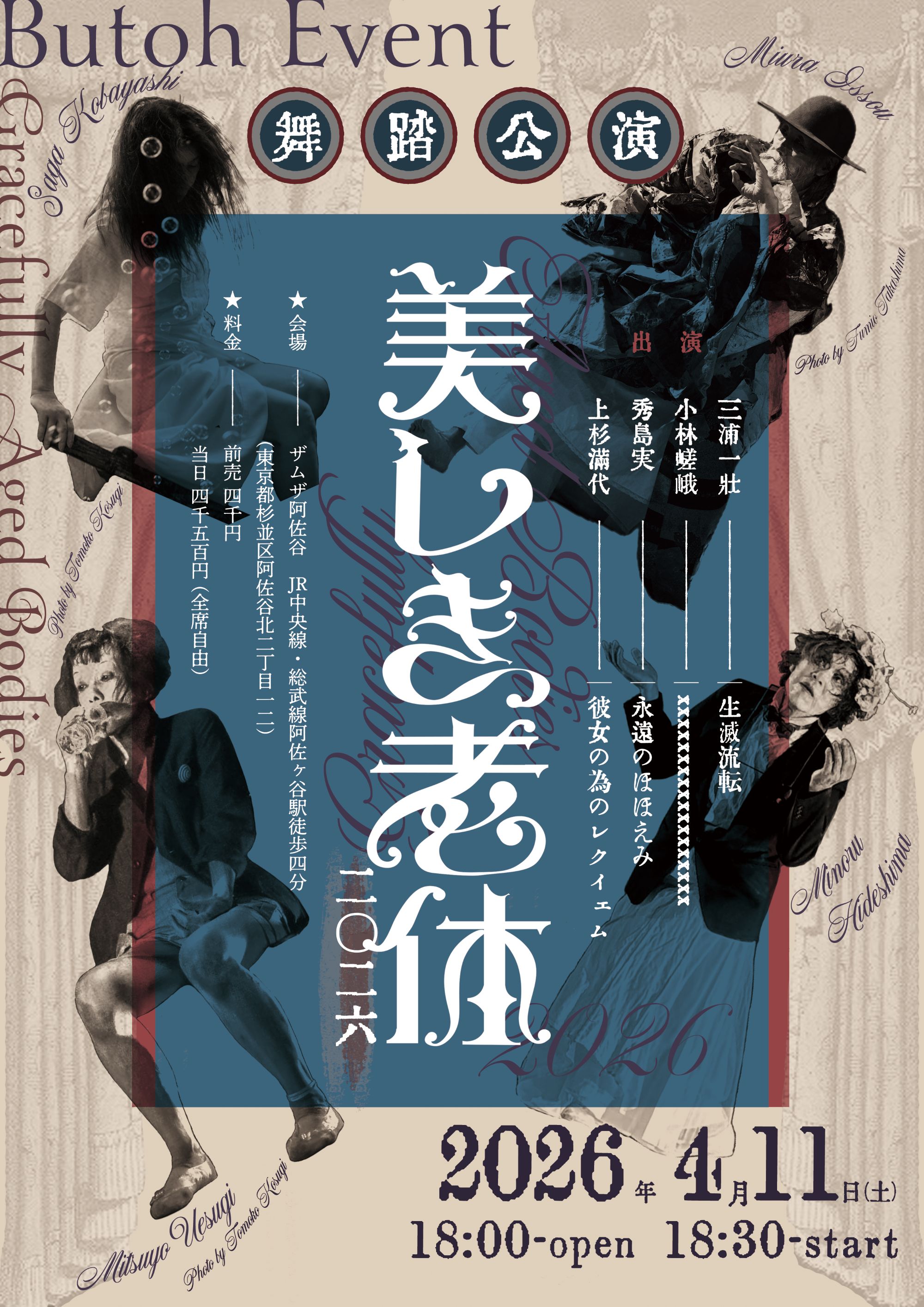 変幻自在に形を変える水のように人の感情は淀み、かつ流れ、そこから何かを汲み取ることもある。 『采女』と『隅田川』にある悲しみから、『名取川』にみる再生の光を感じる一日となりますよう、明之會へお出かけください。