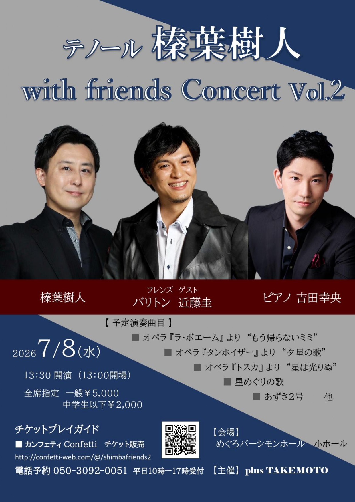 テノール榛葉樹人がお友達を招いてお届けするコンサートシリーズ。