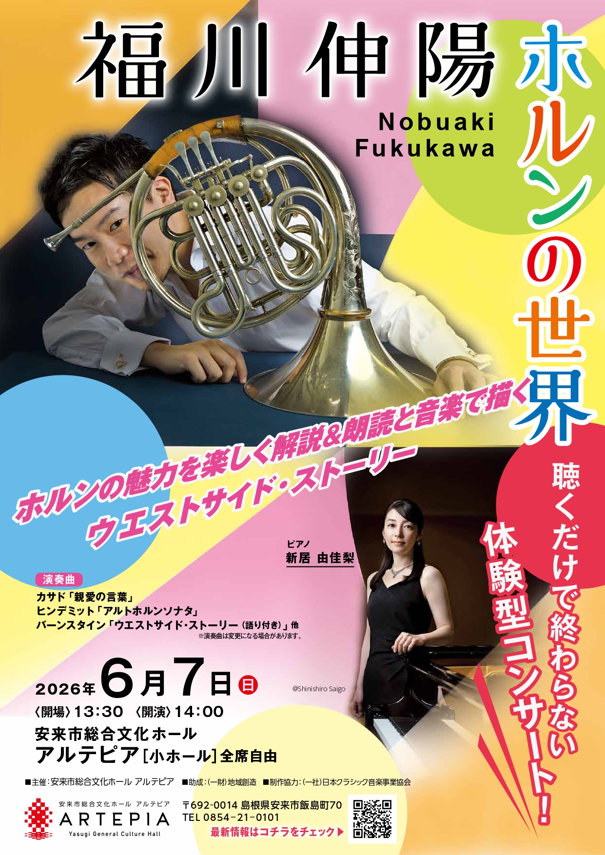 ホルンの名曲をはじめ、大人気!福川さんが自ら物語を語り&演奏する「ウエスト・サイド・ストーリー」など大人気プログラムで構成された「神」コンサートにぜひお越しください。