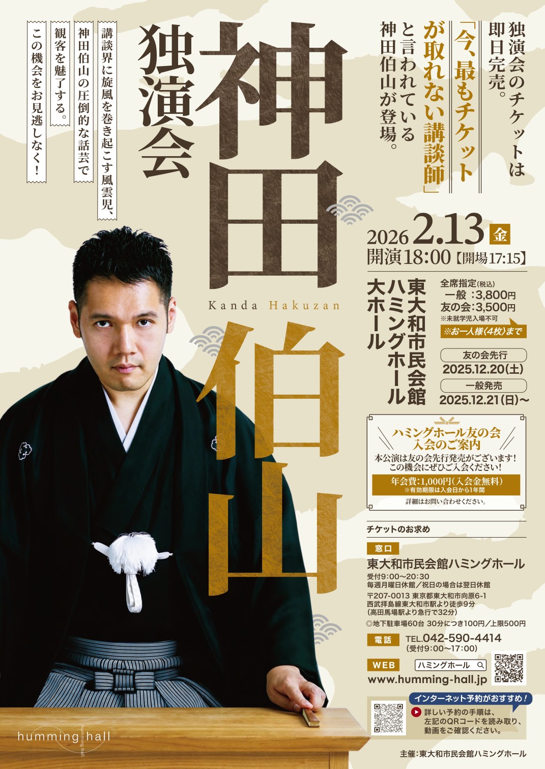 Kanda Hakusan, who is said to be "the storyteller whose tickets are the hardest to get right now," will be appearing.