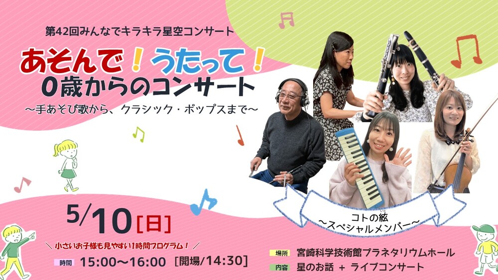 あそんで!うたって!!乳幼児とそのご家族を対象とした参加型コンサート♪プラネタリウムならではの星空や映像演出で普通のコンサートとは一味違う体験を…!