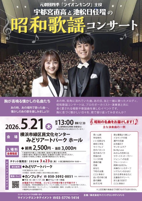 宇都宮直高と池松日佳瑠の昭和歌謡コンサート【みどりアートパーク5月公演】