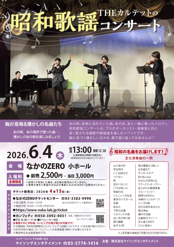 THEカルテットの昭和歌謡コンサート【中野6月公演】