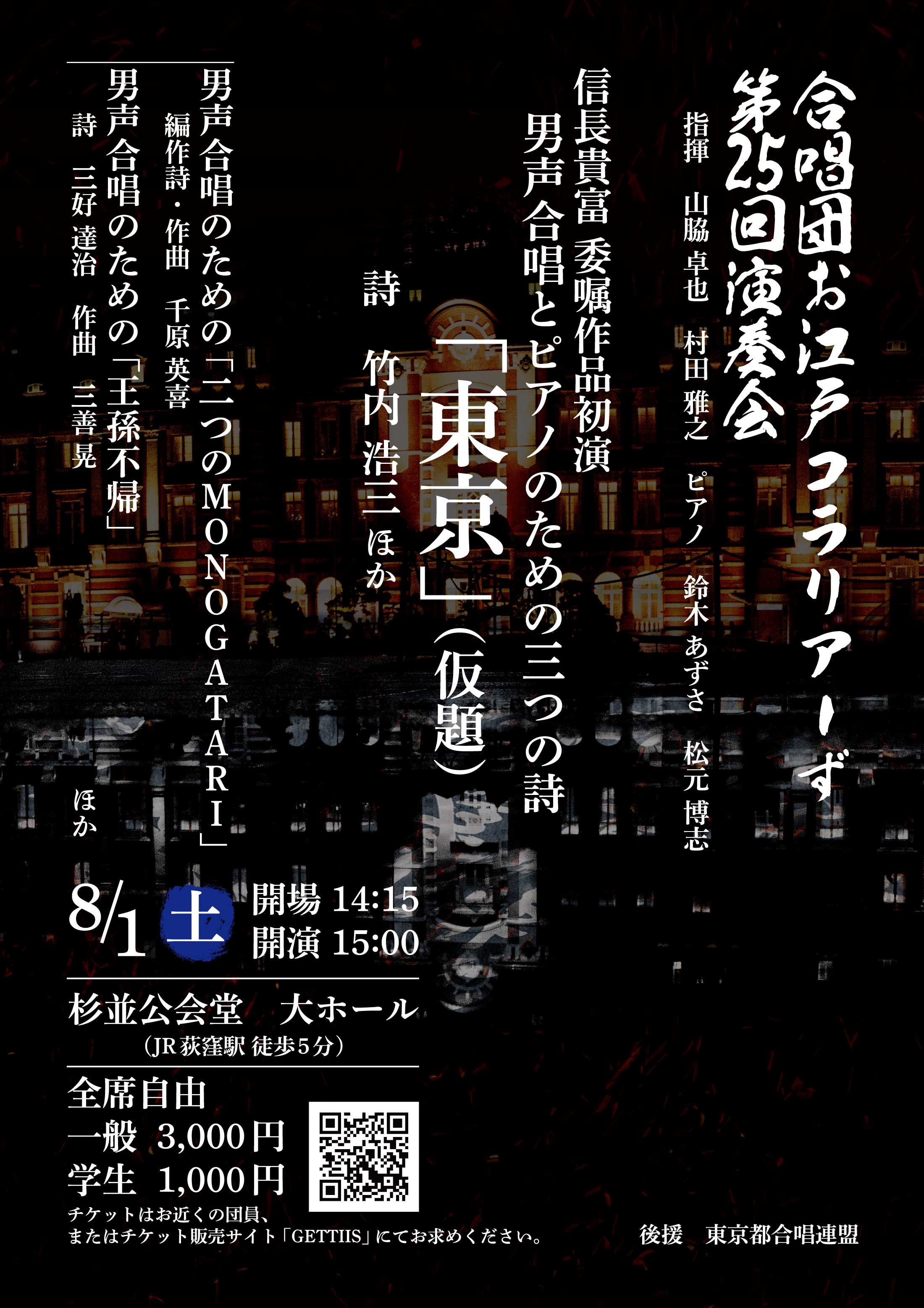 ■ 男声合唱とピアノのための三つの詩「東京」(仮題)