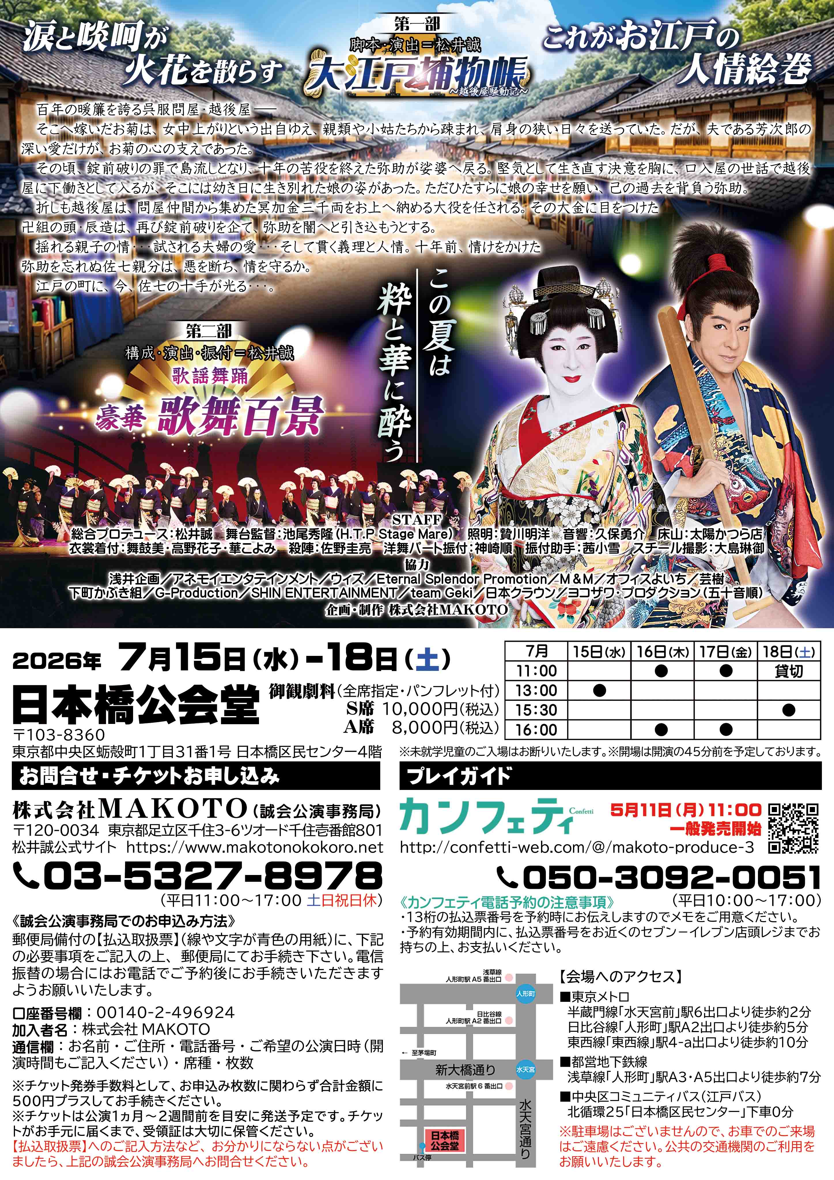 時代劇・歌謡・舞踊と大衆娯楽劇の真骨頂を乞うご期待!この夏、最高のエンターテインメントをお贈りします!