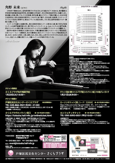 今注目の若手ピアニスト角野未来による、横浜初のリサイタル。