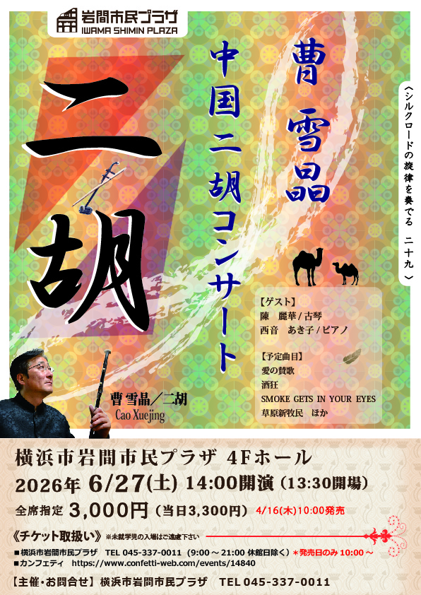 中国二胡の第一人者曹雪晶と、ゲストに古琴の陳麗華、そしてピアノの西音あき子