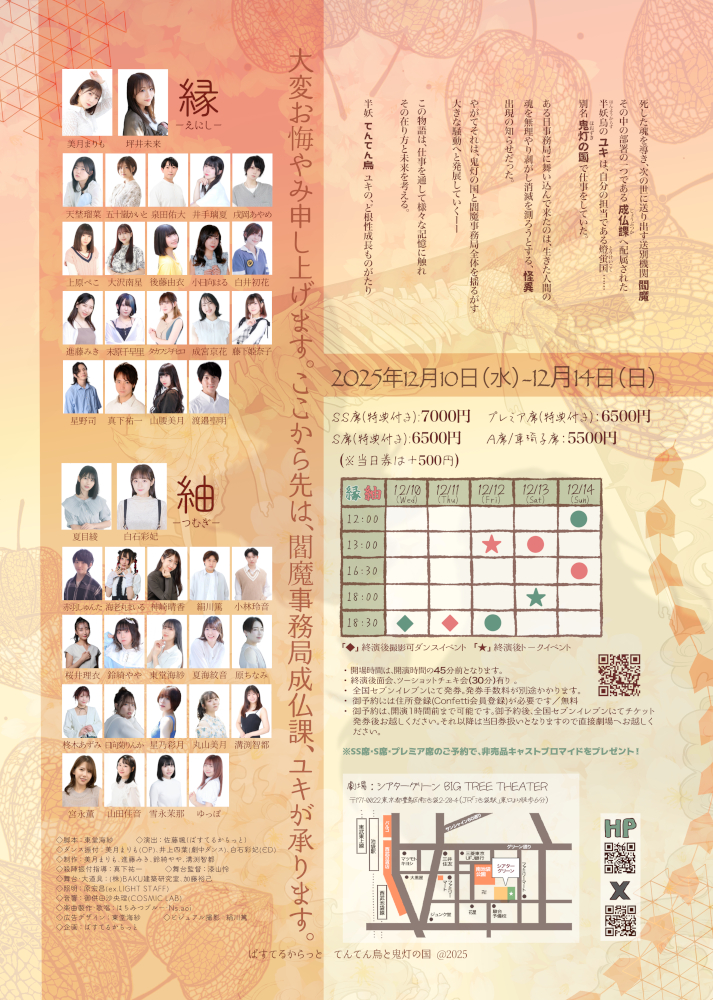 ◆=終演後撮影可ダンスイベントあり。劇中のOPダンスを特別Verにて再演します。舞台本編中は撮影NGですが、終演後のダンス“のみ”撮影OKとなります。