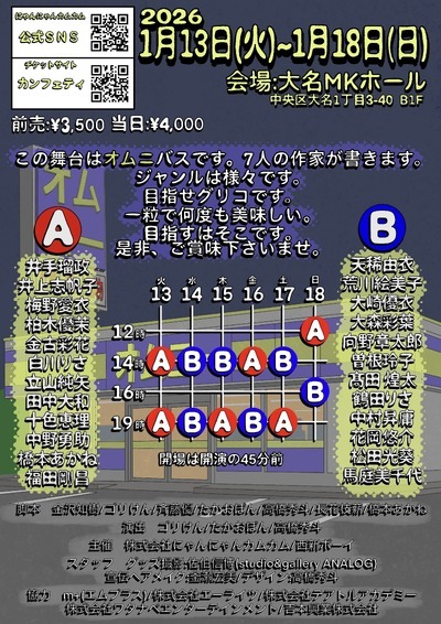 この舞台はオムニバスです。7人の作家の作家が書きます。