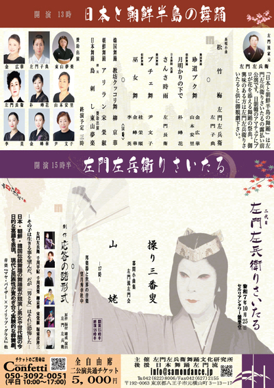 リサイタル開演前に「日本と朝鮮半島の舞踊」を開催。リサイタルの露払い公演で各出演者の門弟が華を添える。賛助出演として日本舞踊家・東山夢楽の清元『鳥刺し』も上演される。