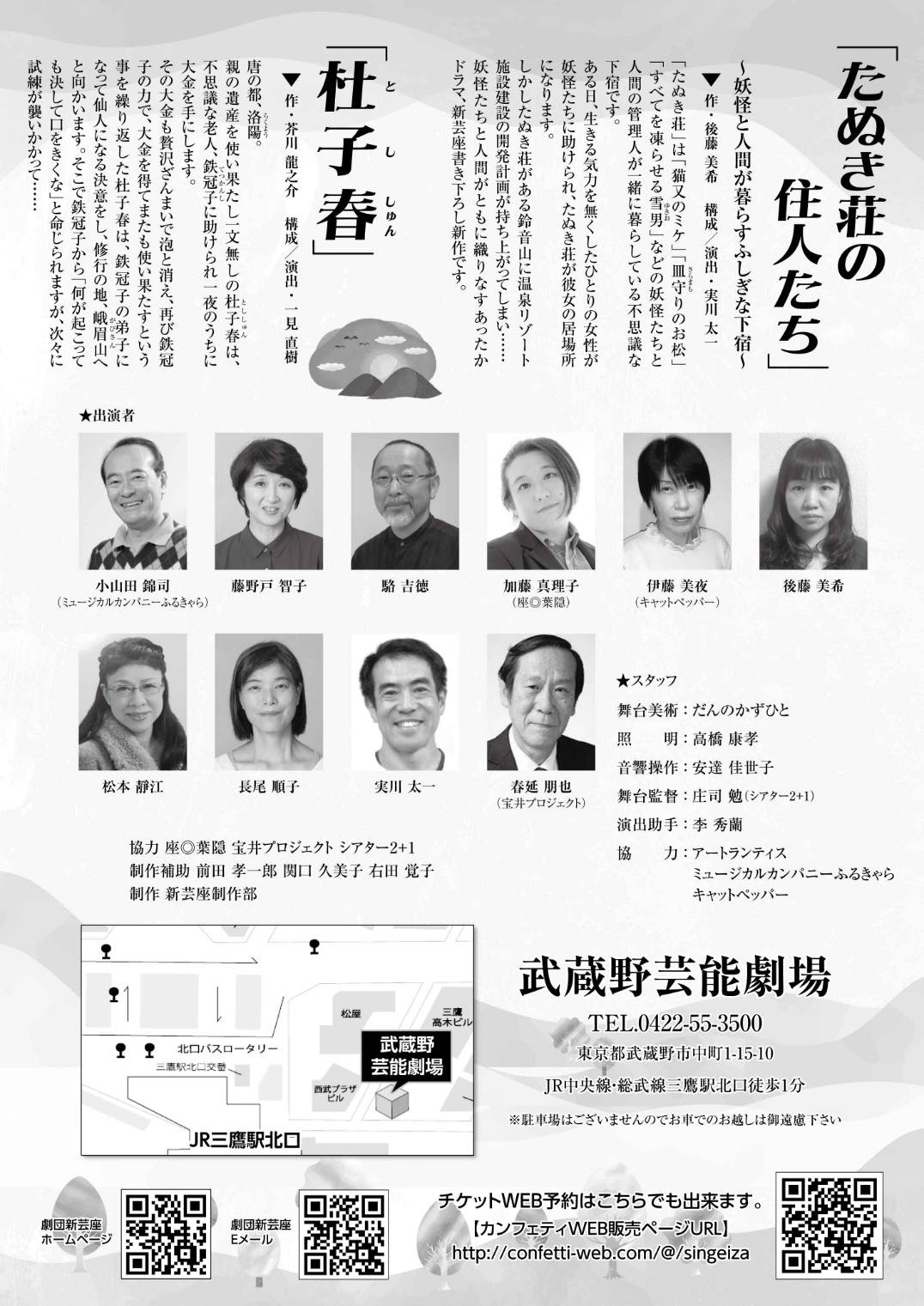 劇団新芸座 第113回公演 「たぬき荘の住人たち」「語り芝居 杜子春」