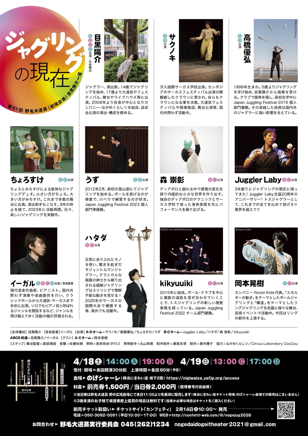第51回野毛大道芸劇場企画、目黒陽介一座『ジャグリングの現在』6度目の開催!!