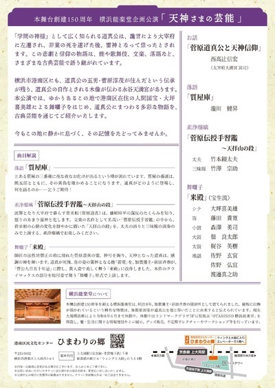 横浜能楽堂本舞台創建150周年 横浜能楽堂企画公演 「天神さまの芸能」