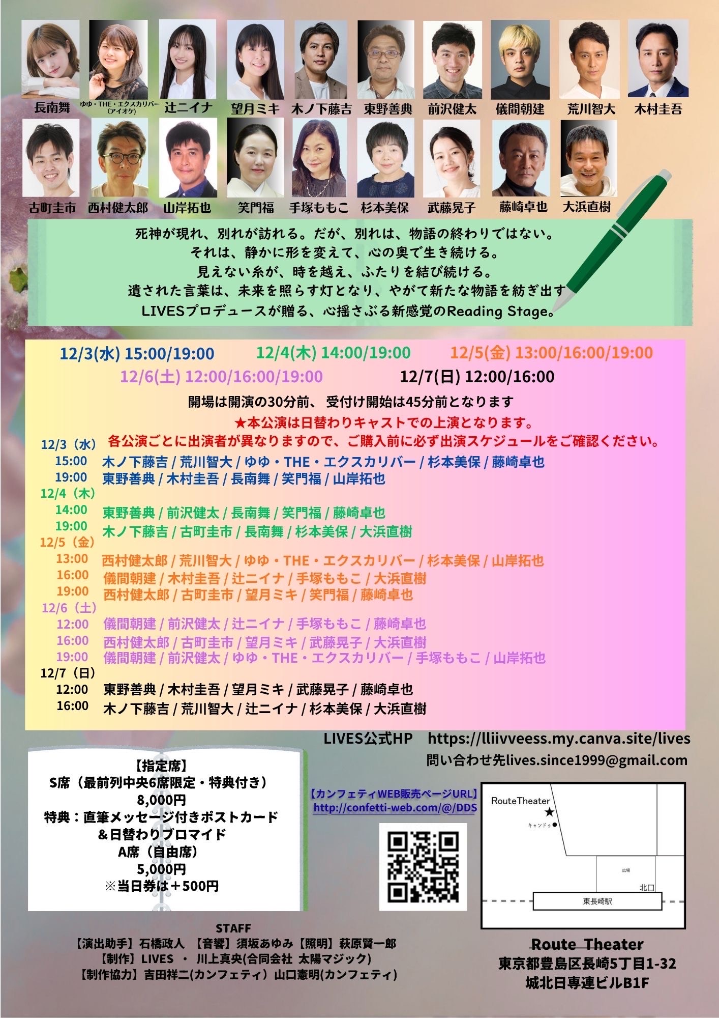 ※ご予約後の公演日、公演時間の変更・取り消しは、一切承れません。