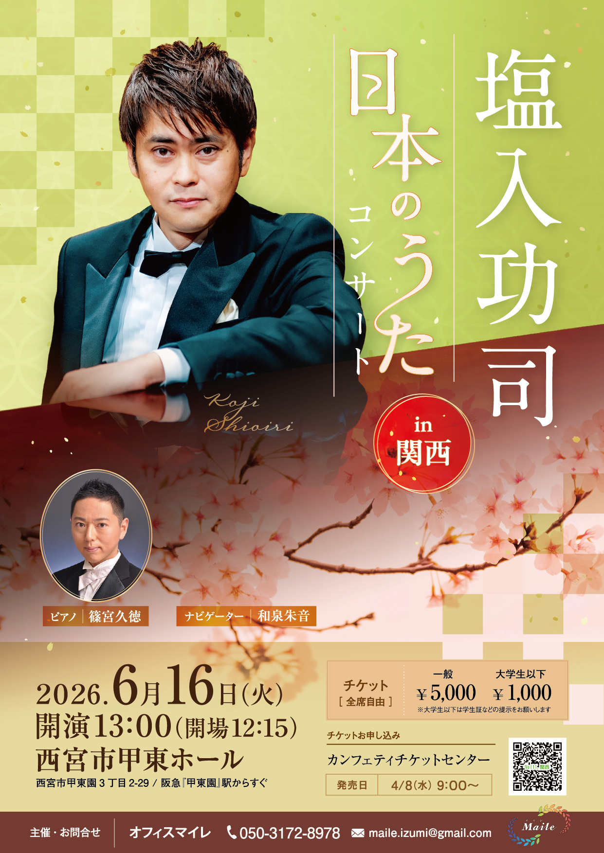 塩入功司の日本のうたシリーズ第11弾の関西公演