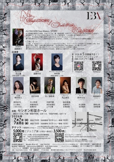 『N-CRACKER / Clara Wakes』は、E.T.A.ホフマンの古典『くるみ割り人形とねずみの王様』を大胆に再解釈し、AIに支配された近未来のディストピア世界を舞台に、人間の感情と自由意志の覚醒を描くオリジナルコンテンポラリーバレエ作品。