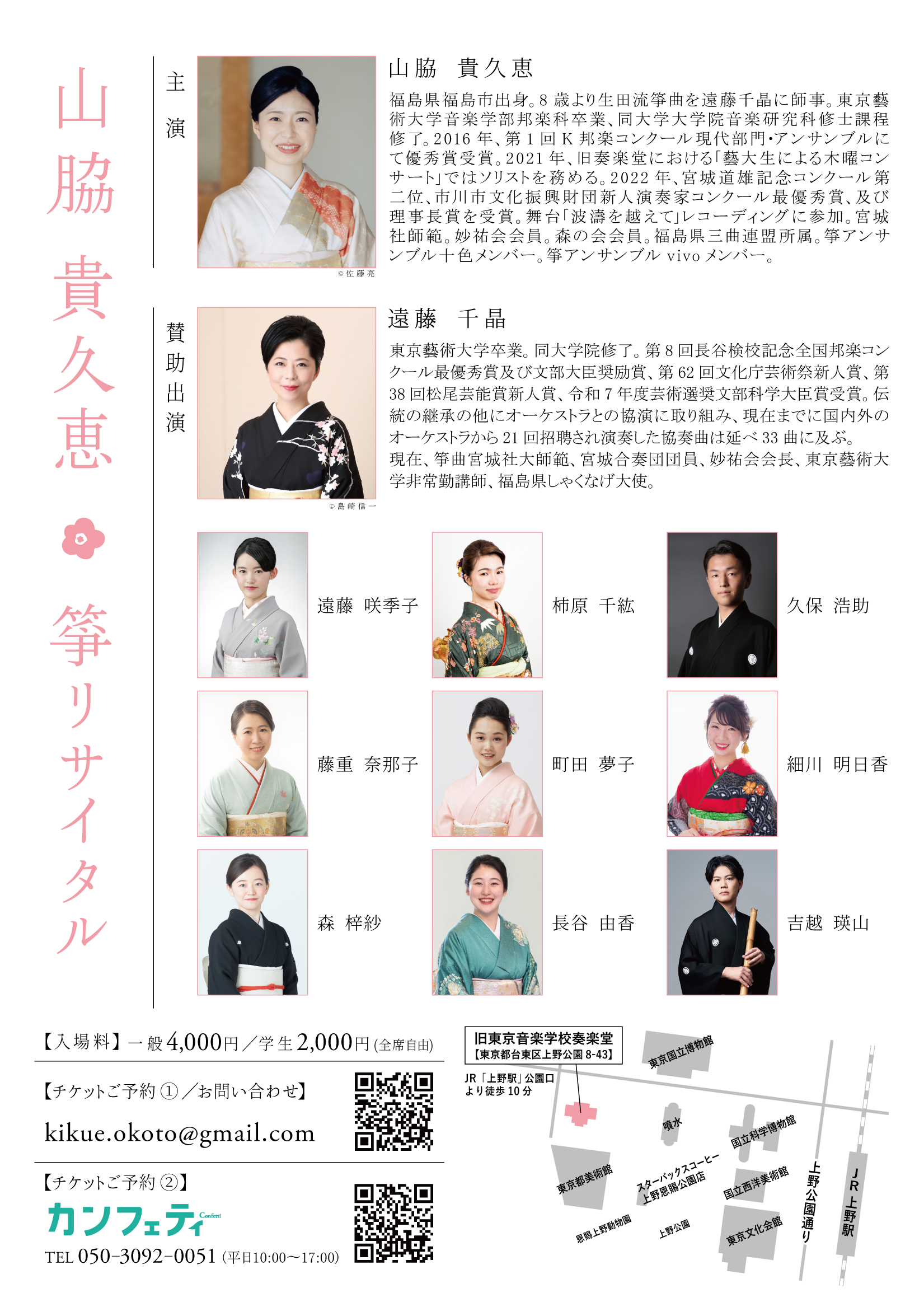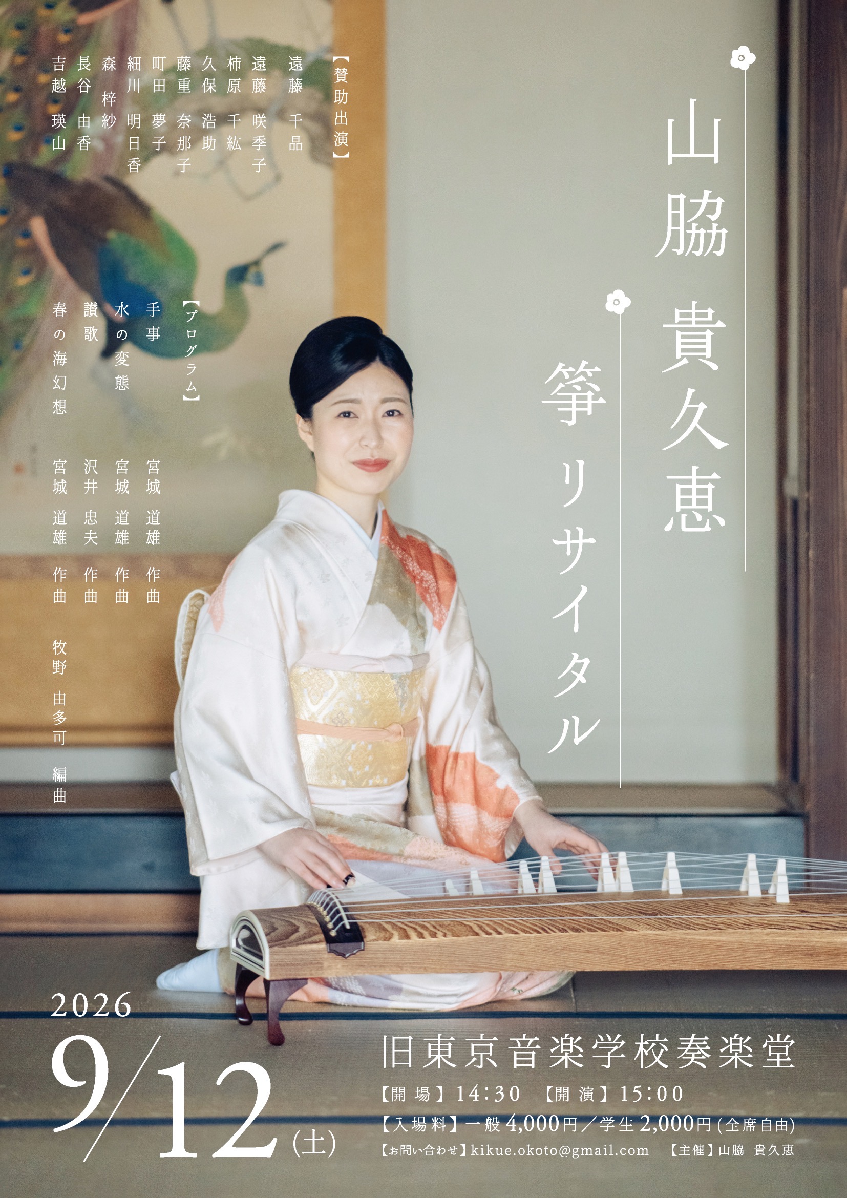 手事(宮城道雄作曲)、水の変態(宮城道雄作曲)、讃歌(沢井忠夫作曲)、春の海幻想(宮城道雄作曲、牧野由多可編曲)
