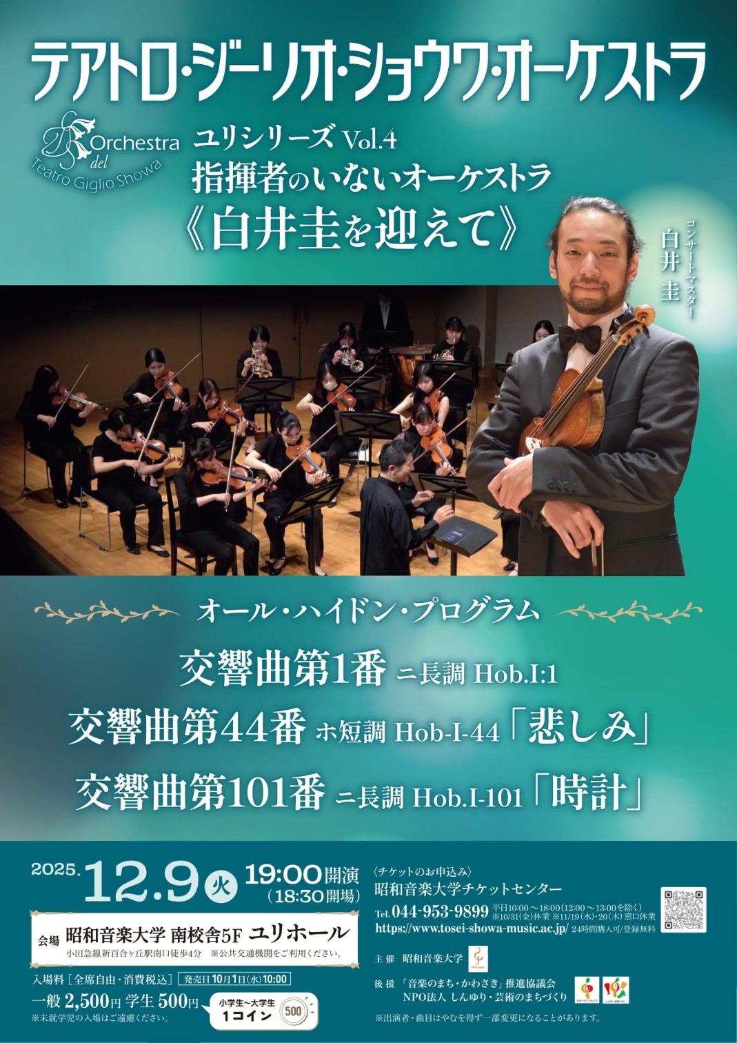 古典派の作曲家 ハイドン・モーツァルト・ベートーヴェンなどの室内オーケストラやアンサンブル作品を中心に演奏する新しいシリーズ「ユリシリーズ」Vol.4!