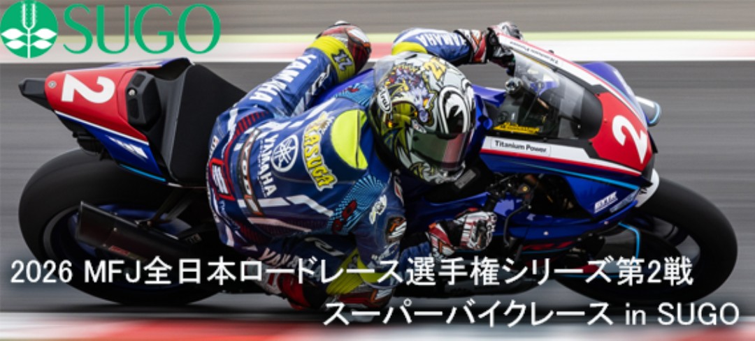スポーツランドSUGOは、国内二輪ロードレースの最高峰シリーズである「2026 MFJ全日本ロードレース選手権シリーズ 第2戦」を開催いたします。本大会では、国内最高峰クラスである JSB1000 をはじめ、ST1000、ST600、J-GP3、併催クラスのJP-SPORTなどの各クラスが実施され、日本のトップライダーたちによるハイレベルな戦いが繰り広げられます。世界基準のマシン性能と高度なライディングテクニックがぶつかり合う、迫力あるレース展開は本シリーズの大きな魅力です。東北地方唯一の開催地であるスポーツランドSUGOは、起伏に富んだダイナミックなレイアウトとテクニカルなセクションを併せ持ち、ライダーの技量とマシンセッティングが勝敗を大きく左右するコースとして知られています。例年、各クラスにおいて接戦が繰り広げられ、多くの名勝負が生まれてきました。2026年大会においても、全日本ロードレース選手権ならではのスピード感と臨場感を間近で体感いただけるとともに、モータースポーツファンはもちろん、初めて観戦される方にもお楽しみいただける大会を目指してまいります。