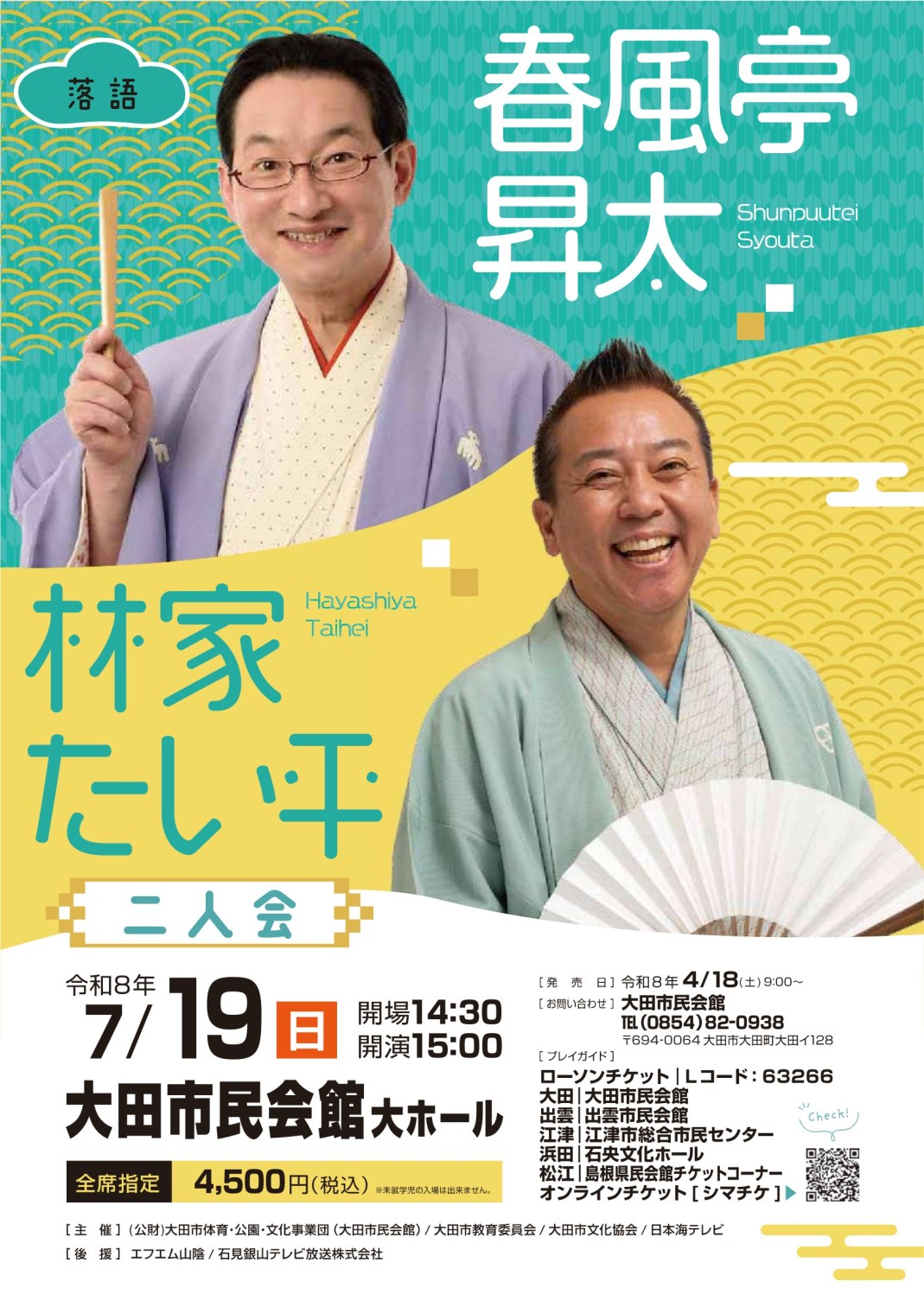 ※車椅子席をご希望の場合大田市民会館(TEL.0854-82-0938)までお問合せください。