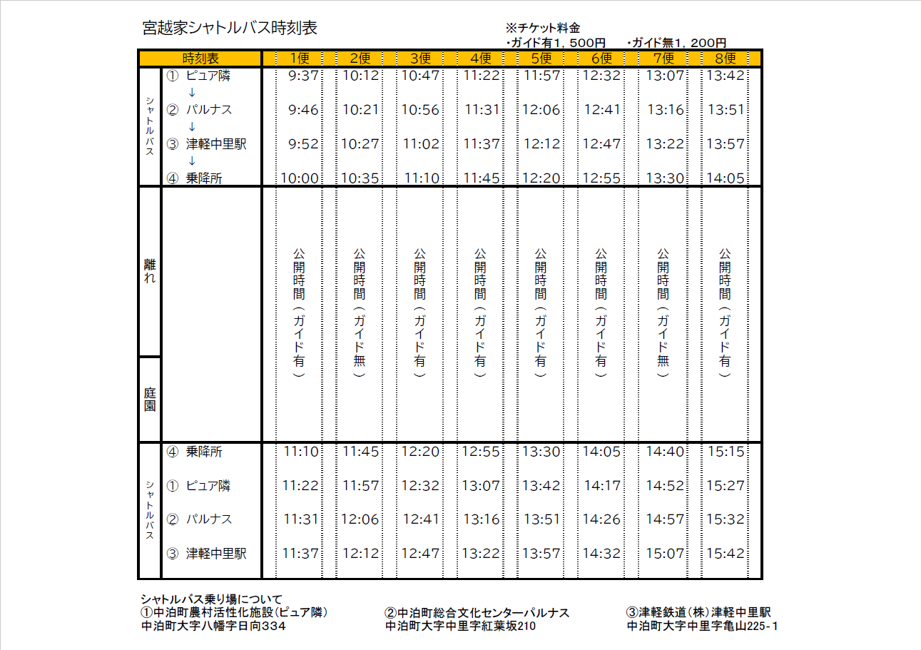 【シャトルバスの時間はこちら】※見えづらい場合は拡大をお願いします。
