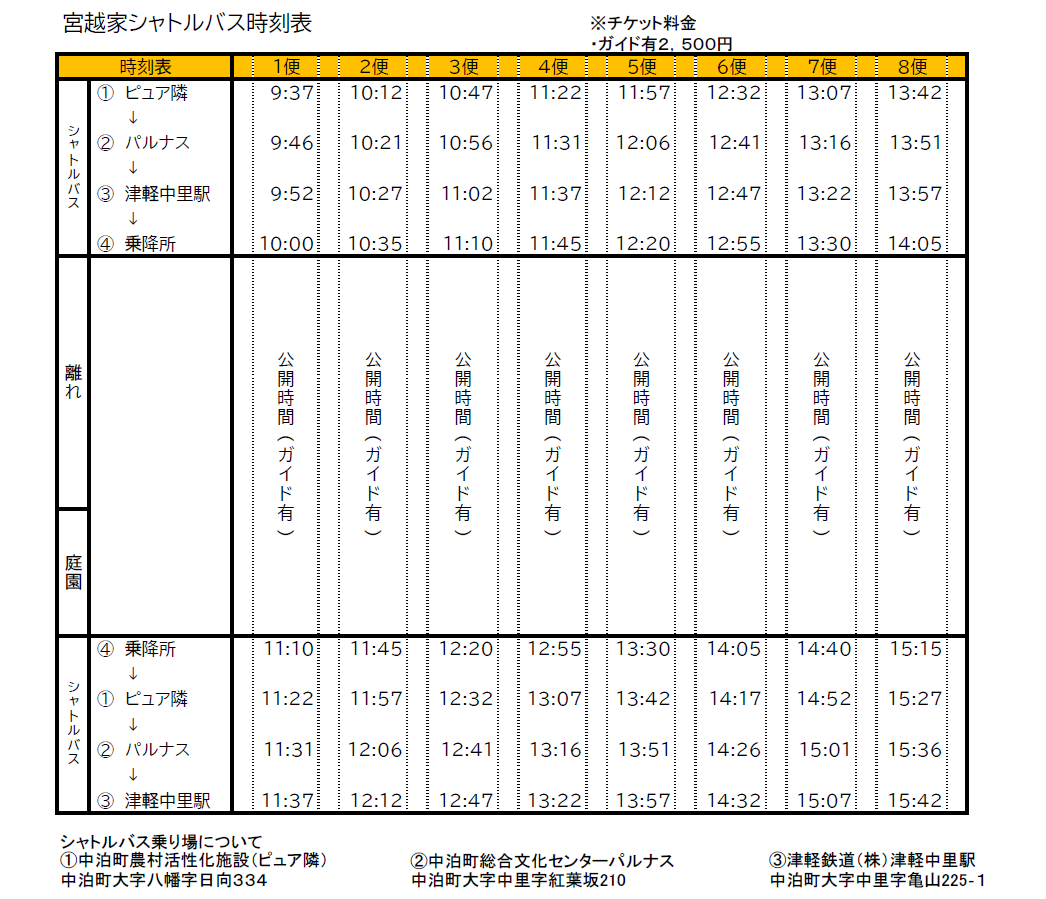 (注意)チケット代金はシャトルバス代、中泊町博物館入館料込の料金です。