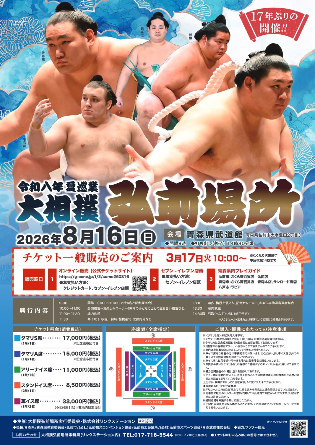 ◆問合せ:大相撲弘前場所事務局(リンクステーション内) 017-718-5544