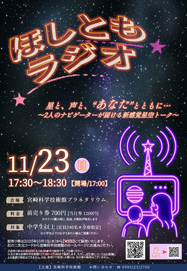 勤労感謝の日に贈るプラネタリウムプログラム。まるでラジオを聞いているかのようにリラックスして楽しめる新感覚の星空トークをお楽しみください。
