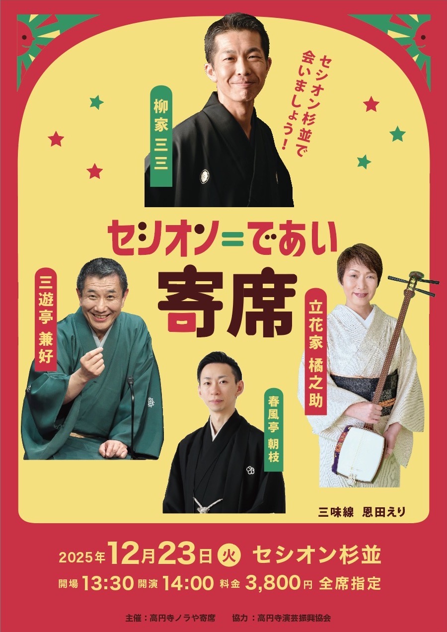 コント、講談、落語、曲独楽とバラエティに富んだ番組で、お正月の締めくくりを笑いだくさんにお祝いしましょう!