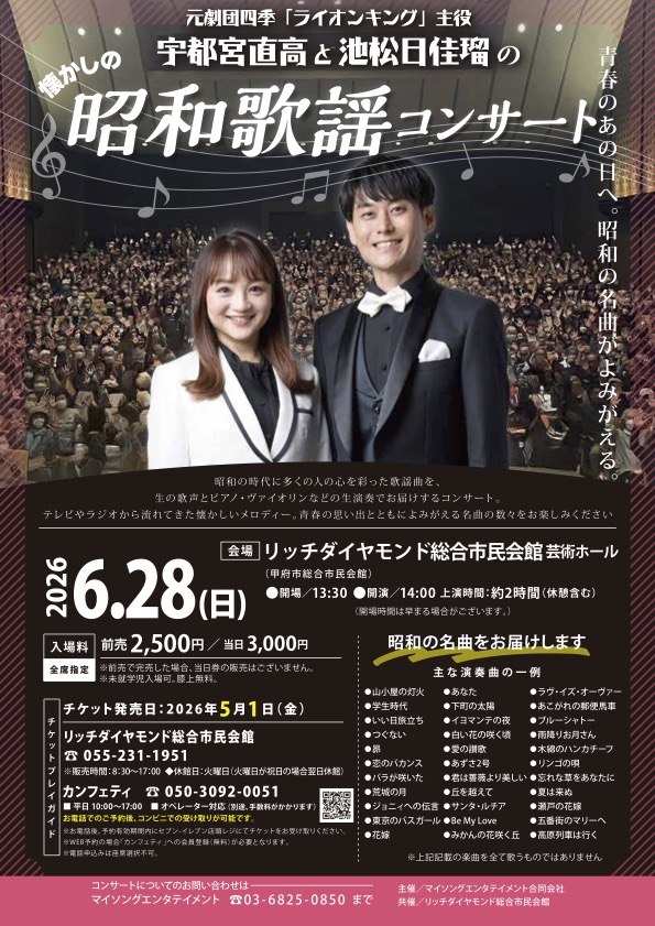 楽しいMCと、ピアノの吉田幸央さんを交えた3人による素晴らしい演奏をお楽しみください。