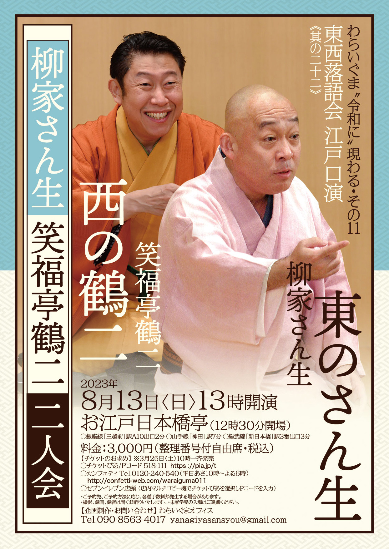 東西落語会 江戸口演 其の二十二 東西の実力派による恒例の二人会。