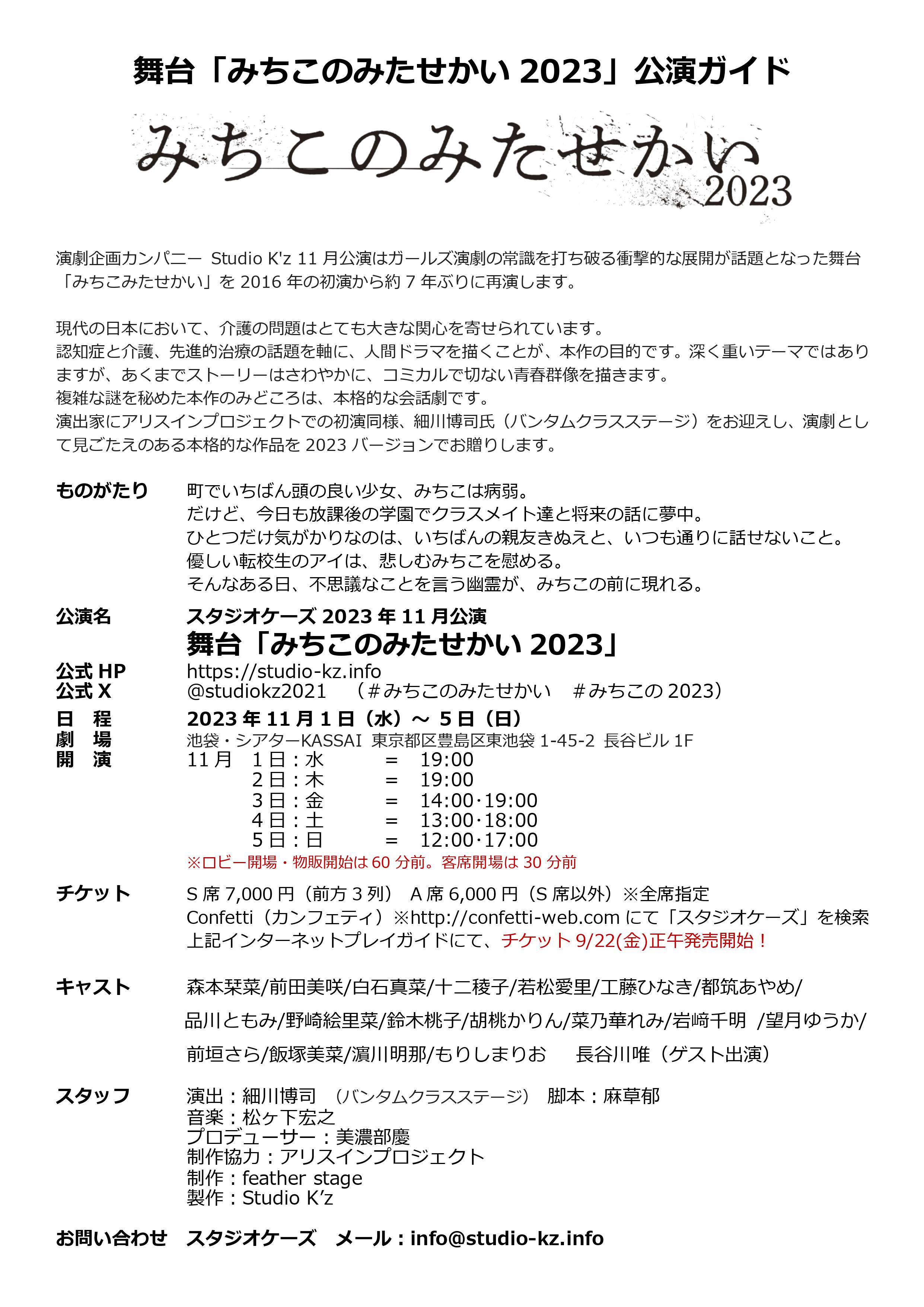 町でいちばん頭の良い少女、みちこは病弱。 だけど、今日も放課後の学園でクラスメイト達と将来の話に夢中。 ひとつだけ気がかりなのは、いちばんの親友きぬえと、いつも通りに話せないこと。 優しい転校生のアイは、悲しむみちこを慰める。 そんなある日、不思議なことを言う幽霊が、みちこの前に現れる。