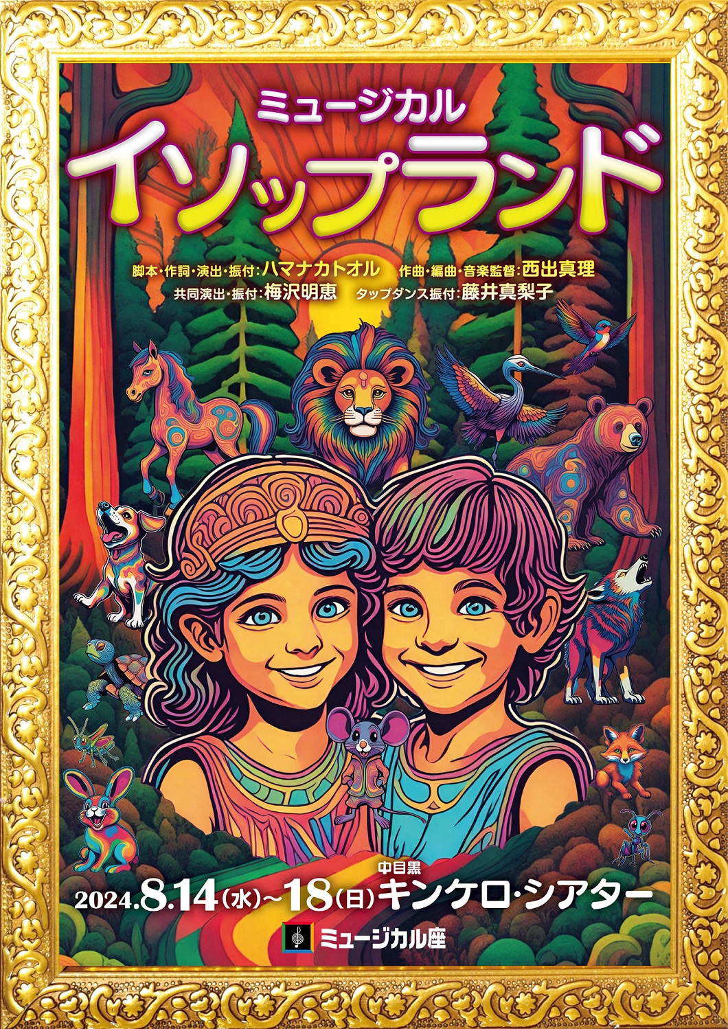 今から2,500年以上も昔、奴隷の身でありながら、「アリとキリギリス」「うさぎとかめ」「北風と太陽」「オオカミが来た!」「都会のネズミ田舎のネズミ」など、今でも語られ続ける多くの物語を残した寓話作家イソップの波乱の生涯を描きながら、彼が生きるために必要だった数々の有名な寓話を、楽しい歌と踊りと演技で描くミュージカルです。