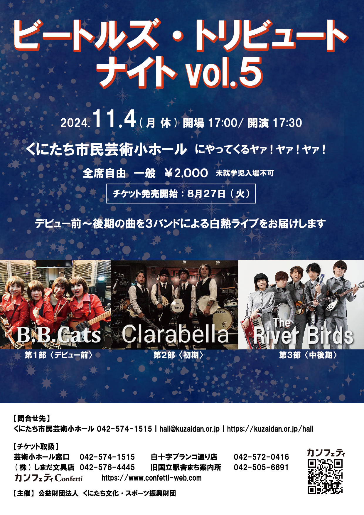 ビートルズをこよなく愛する3バンドが5年ぶりに満を持しての集結!年代別の演奏と迫力いっぱいのパフォーマンスに大注目!3バンドがビートルズデビュー前・初期・中後期をそれぞれ担当し演奏します。