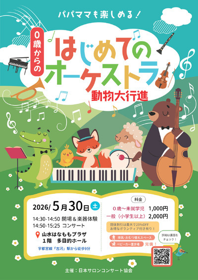 0歳の赤ちゃんから親子で楽しめる!全国で大人気の参加体験型クラシックコンサート。開演前の楽器体験、ドレスコーナーも大人気。家族の思い出に残るコンサート