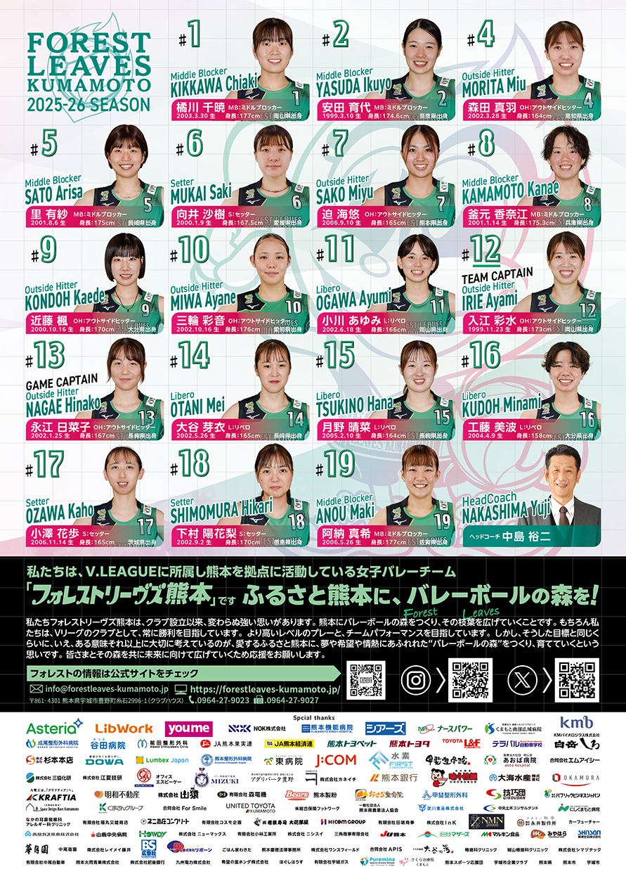 主辦單位:熊本森林之葉排球俱樂部、熊本縣排球協會
