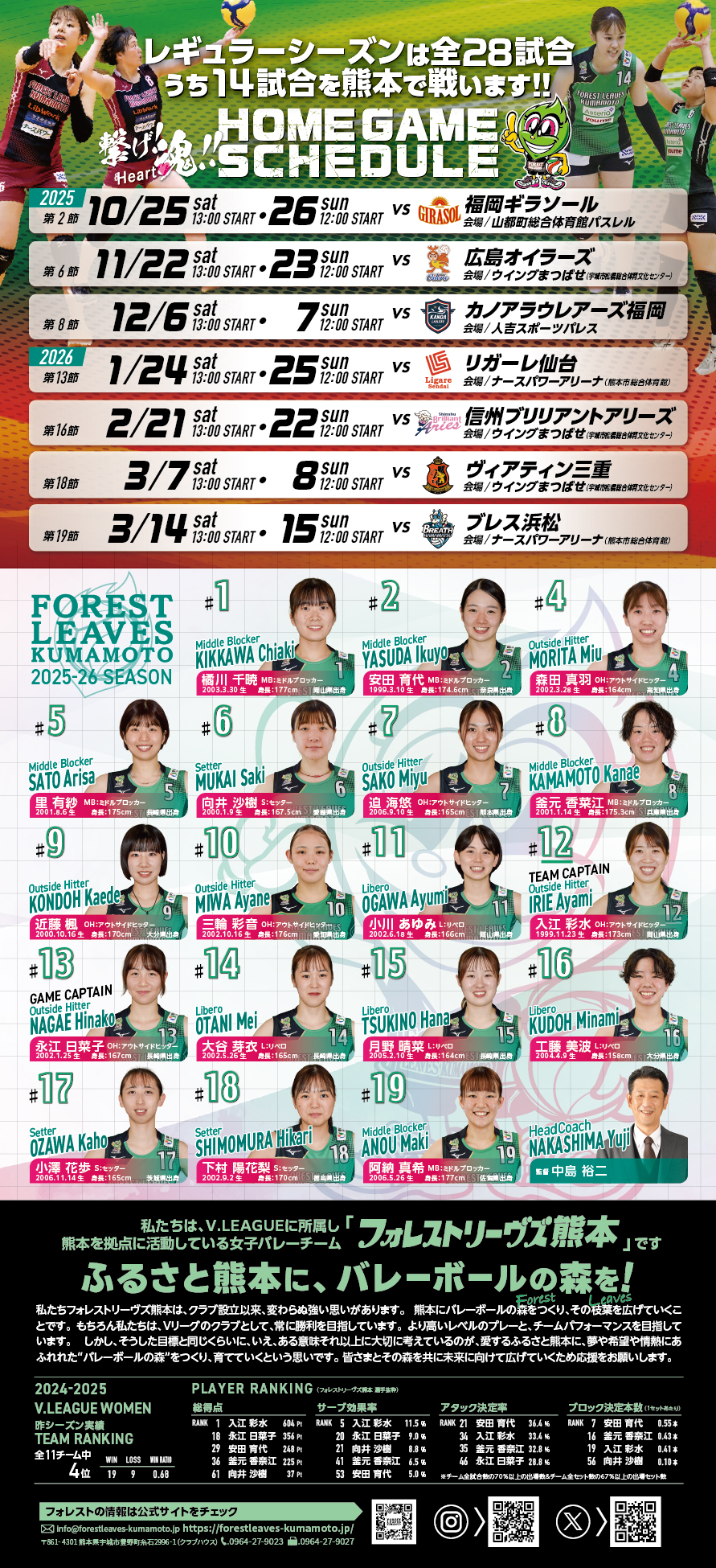 2025-26 V.LEAGUE WOMEN REGULAR ROUND Forest Leaves Kumamoto 主場比賽公告海報