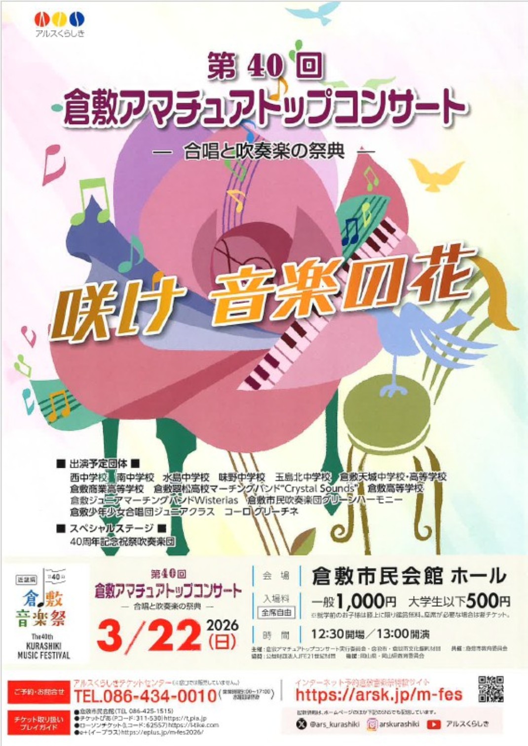 概述銅管樂隊和合唱團的盛會。由當年在岡山縣錦標賽上取得優異成績的倉敷市音樂團體聯合舉辦的音樂會。