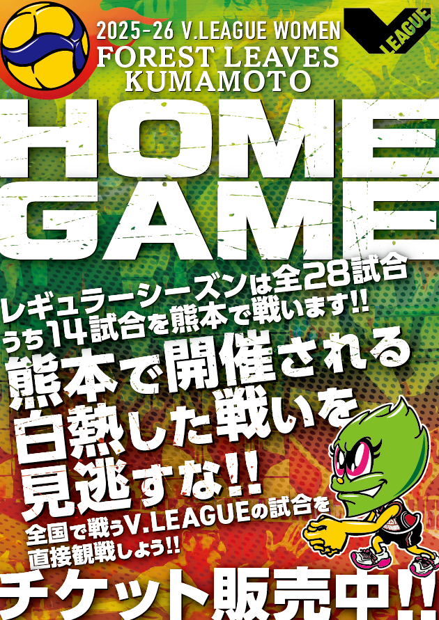 這是您在縣內各地體育館近距離體驗職業排球激情的機會!將熊本的力量帶到球場上!熊本當地俱樂部球隊「森林之葉熊本」與來自全國各地的頂級球隊之間展開激烈對決。在會場上為全力以赴的球員們加油!您的歡呼聲將為球隊注入力量。讓我們一起體驗排球的魅力吧!